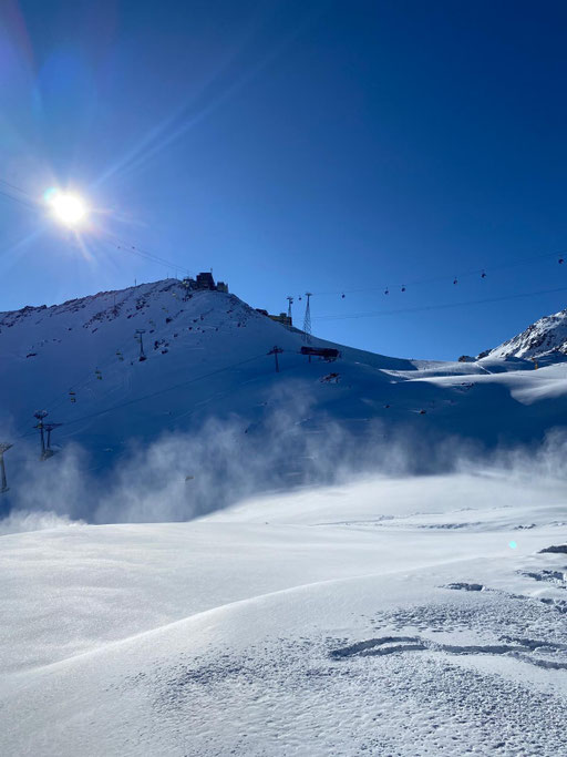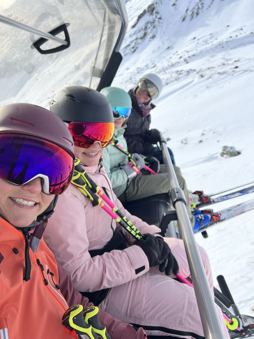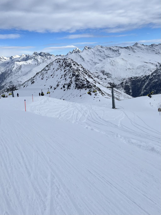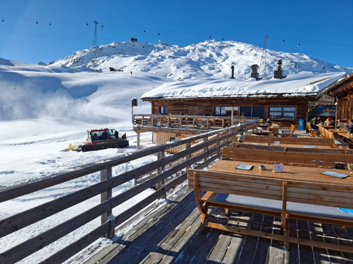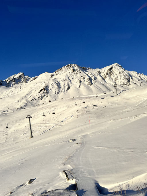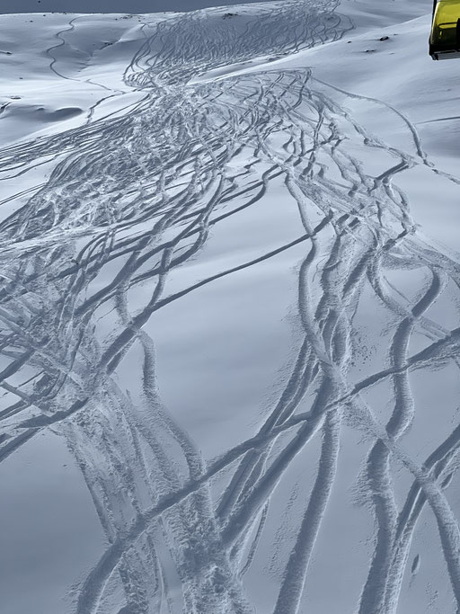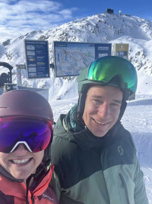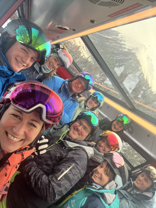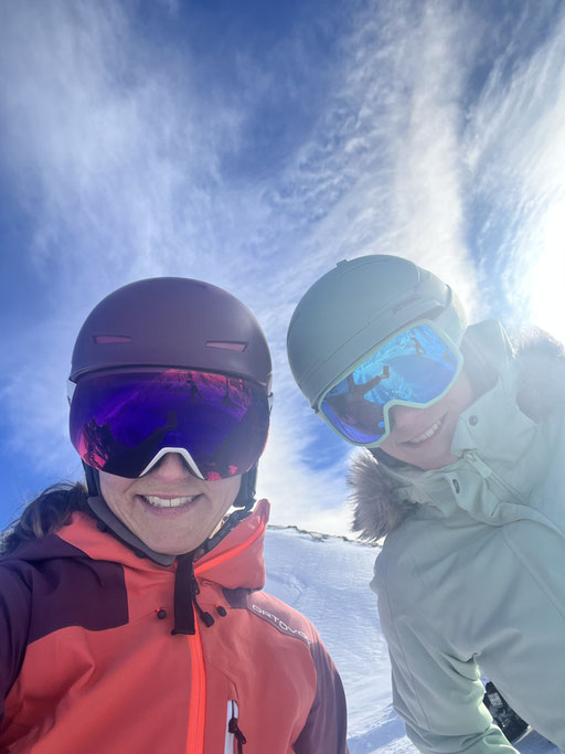 Zum guten Glück gehören die meisten von uns zu denen, die am Morgen aufs erste Bähnli möchten. Denn nur die ersten drei Bahnen fuhren ins Skigebiet Parsenn rauf. Anschliessend war die Verbindung wegen technischem Defekt unterbrochen. So hatten alle nach oben Gekommenen wunderbar leere Pisten, wunderschönes Wetter und somit einfach Traumbedingungen für den ersten Skitag.